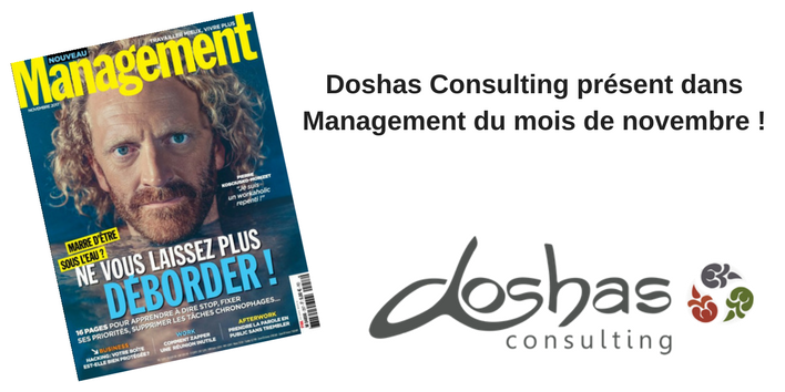 Identifiée comme start-up innovante, Doshas Consulting est mis en valeur dans le numéro de novembre du magazine Management qui vient de paraître dans les kiosques.